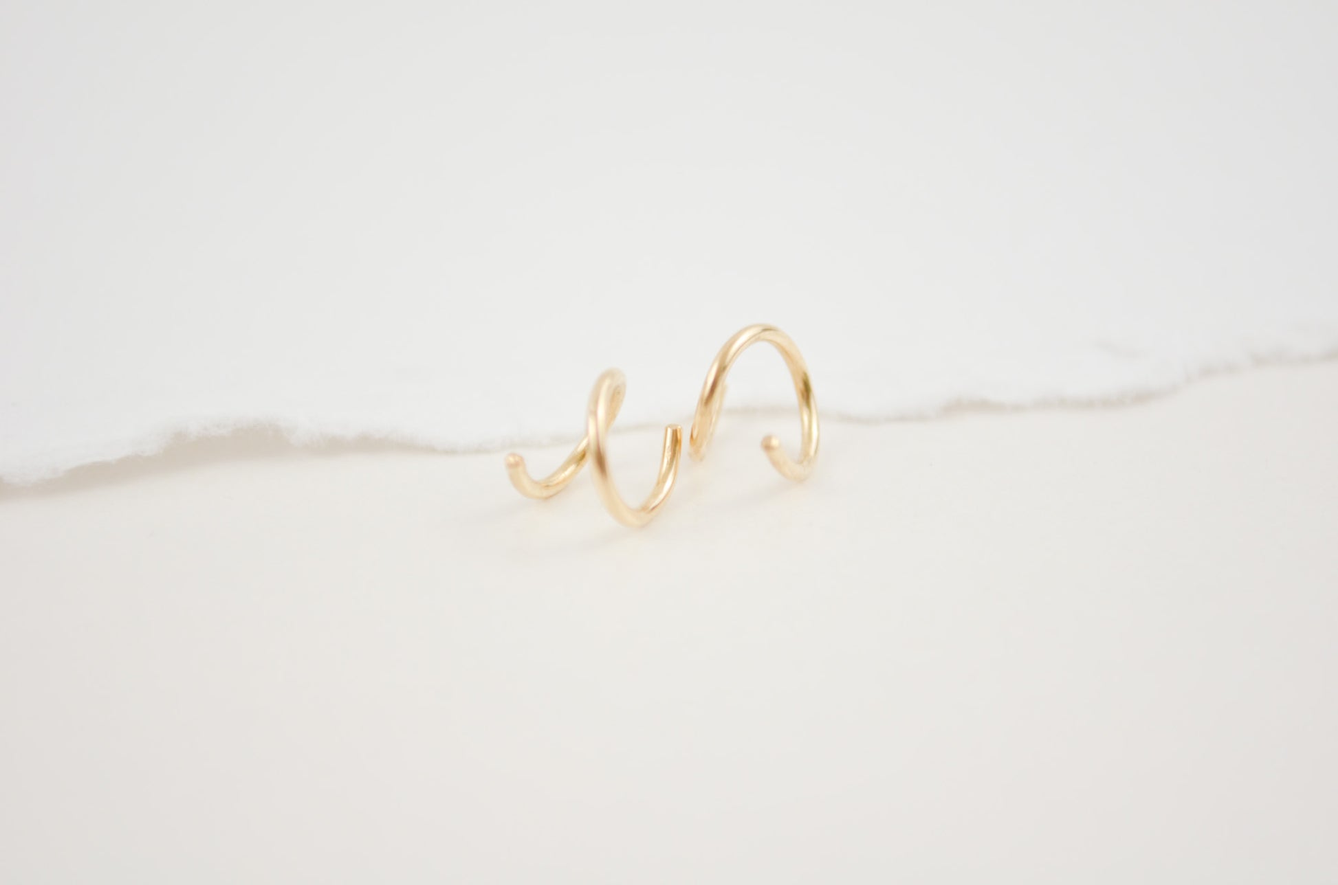 Tiny little hug hoops that are easy for everyday. These little hoops just spiral right into your piercing for an adorable hug around your lobe and the illusion of a second piercing.