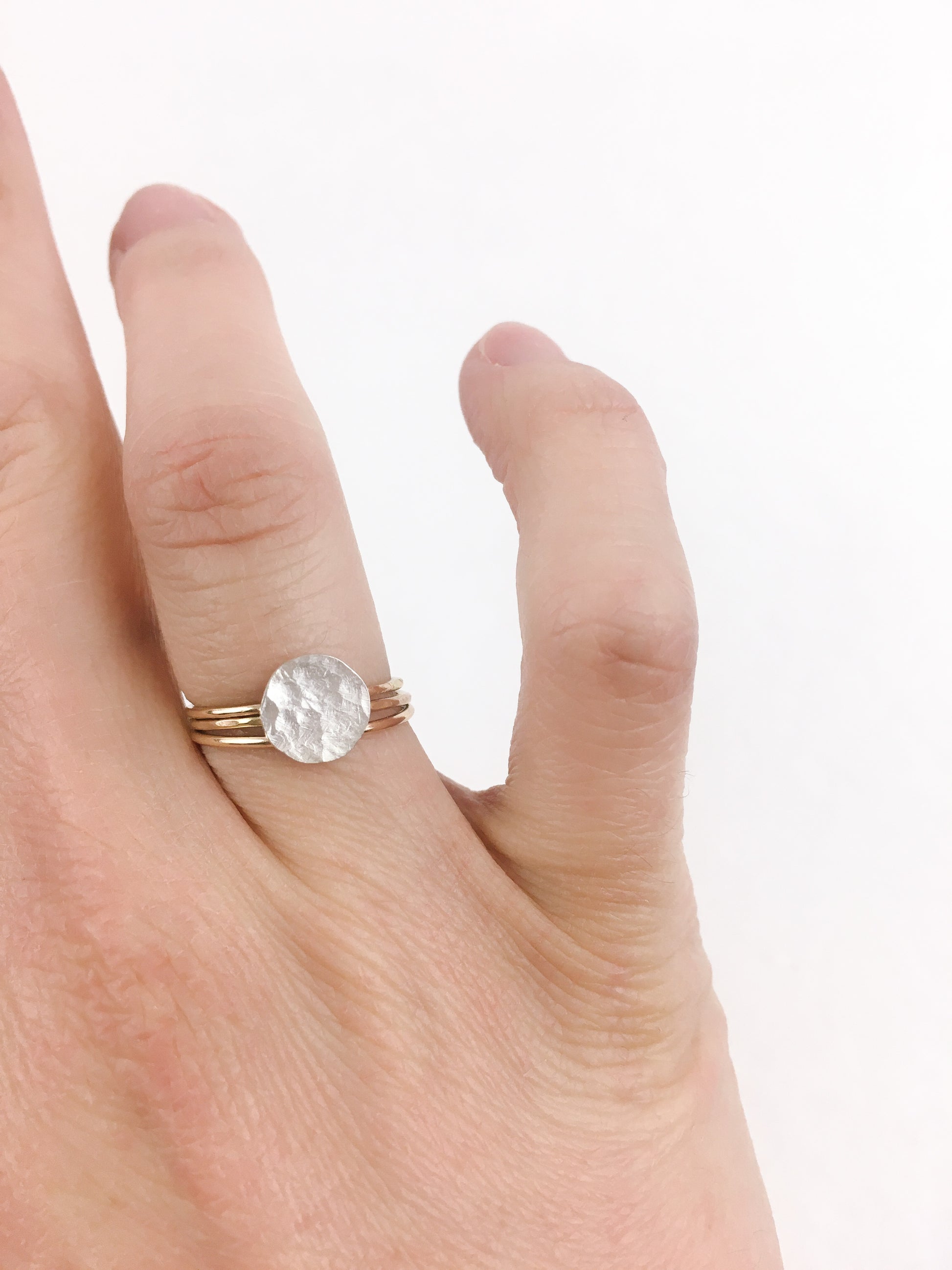 A beautiful stack of three rings, handcrafted with mixed metals and lots of love.